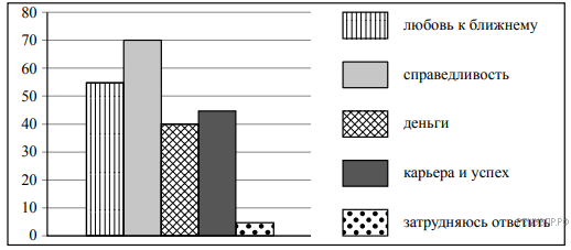 2. Одни люди считают наиболее важным любовь к ближнему, другие отдают предпочтение деньгам. Кого из этих групп среди опрошенных больше? Объясните, как ценность, которую предпочли опрошенные, может проявляться в повседневной жизни.